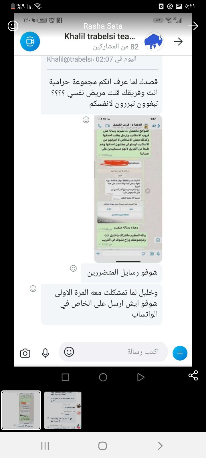 انا قمت بفضح خليل وإغلاق الجروب بالشركة حتا لا يستطيع أن ينصب على احد من جديد وقمت بتحزير الناس بالكلام والفديوهات وبالدليل من كلام الناس مو كلامى